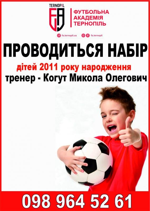 Триває набір у "Футбольну академію Тернопіль". Допоможіть своїй дитині стати на свій омріяний зірковий шлях у професійному футболі.
