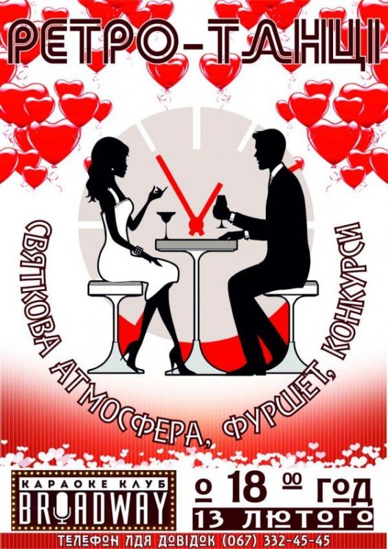 Напередодні Дня Святого Валентина, коли всі закохані хочуть виказувати свою любов та отримувати взаємні знаки уваги від своєї половинки, в караоке клубі "Broadway" організовується ретро-вечірка. Метою ії проведення є соціалізація людей, що є трохи старшими за середній вік та волею долі опинились в активному пошуку, але не втрачають надії знайти ту єдину, чи того єдиного з ким заб'ється серце та засяють очі. Але і для тих, хто має з ким танцювати, наш захід буде цікавим, бо є можливість повеселитись, танцювати досхочу та зустріти старих друзів.