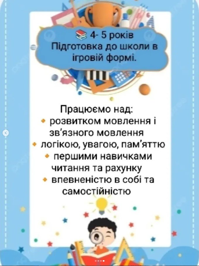 4- 5 років - підготовка до школи в ігровій формі