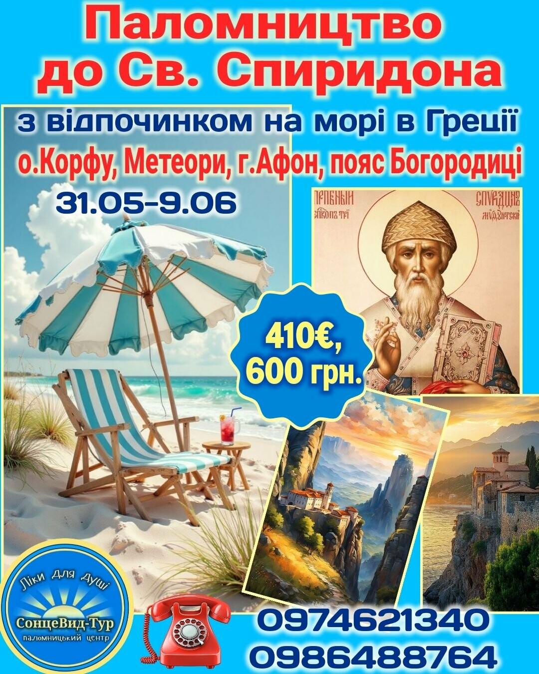 до Святого СПИРИДОНА з відпочинком на побережжі Егейського та Іонічного моря в Греції