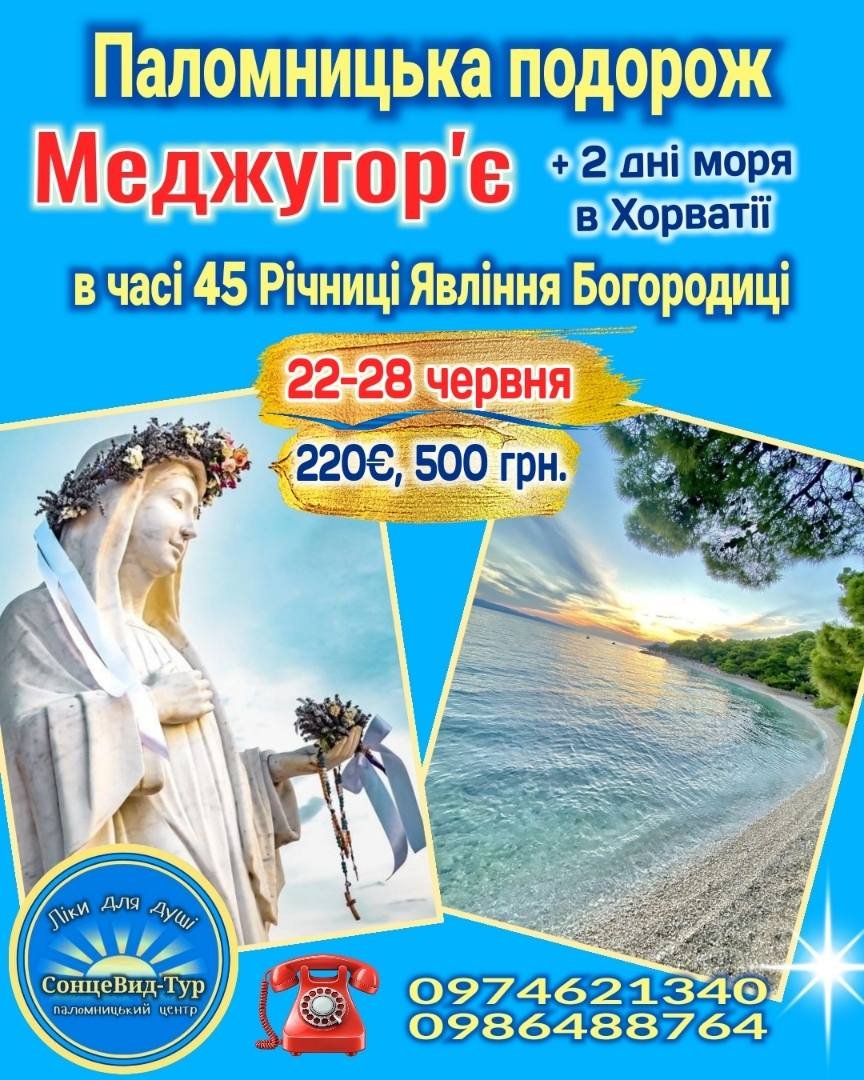 Запрошуємо у паломницьку подорож до Меджугор'я в часі 45 річниці Об'явлення з відпочинком на морі в Хорватії
