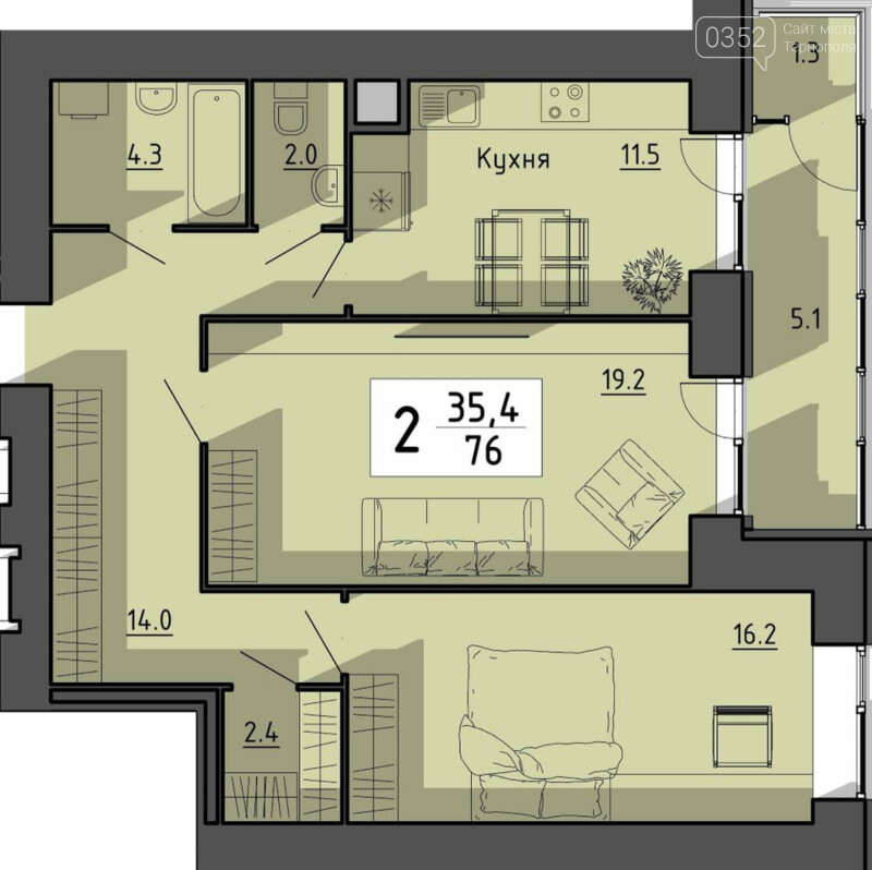 #128208; Площа: 76 м #178;