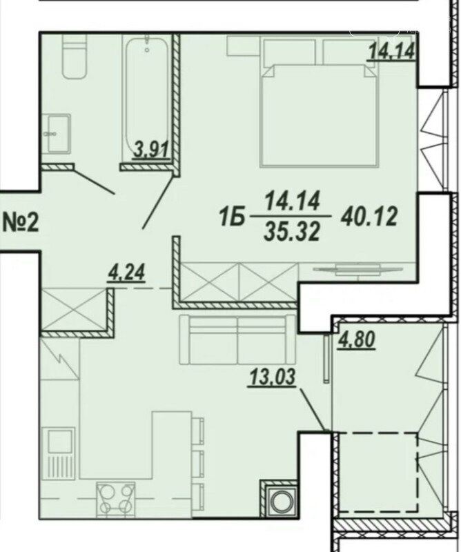 Загальна площа – 40 кв.м