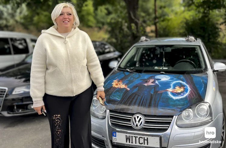 Водійському стажу Оксани — більш як 20 років. У звичні дні вона мотається містом на власній машині. Її ні з чиїм не сплутаєш: замість сірого капоту — зображення чаклунки з двома вогняними кулями, замість цифр на номерному знаку — напис WITCH. І на дверцятах наклейки у вигляді шевронів: «Бойова відьма», «З відьмами не сперечатися».