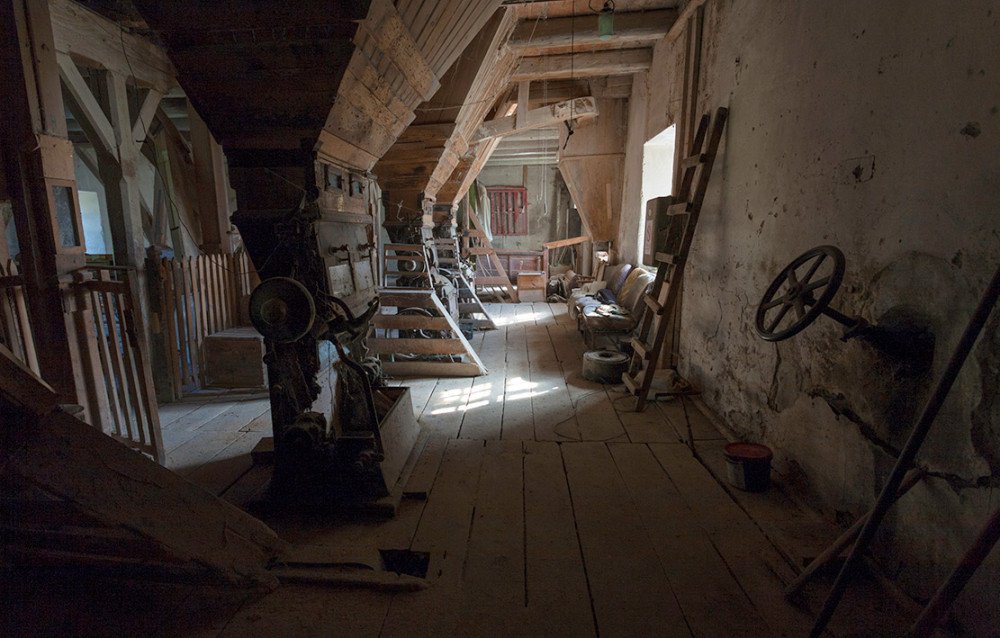 Колись млин був важливим виробничим центром для навколишніх сіл: тут мололи зерно на борошно, виготовляли крупи та корми для худоби. Поруч діяла невелика гідроелектростанція, що забезпечувала електроенергією маєток власника та громадські будівлі, а частина старого обладнання й досі збереглася всередині.