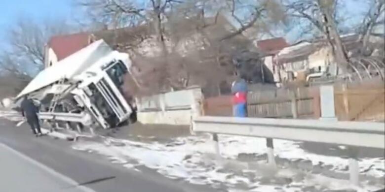Сьогодні, 18 березня, в Озерній на Тернопільщині перекинулась вантажівка. Про це повідомляють у місцевих телеграм-каналах. За словами очевидців, водій вантажівки DAF не впорався з керуванням та наїхав на відбійник. Унаслідок цього фура перекинулася на бік і пошкодила огорожу житлового будинку. Наразі невідомо чи є постраждалі. Очікуємо коментарів поліції.