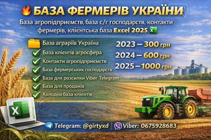 База аграріїв, база для розсилок Viber/Telegram, база клієнтів агросфера, база для продажів, база клієнтів агросфера, холодна база фермерських господарств 2023–2025.